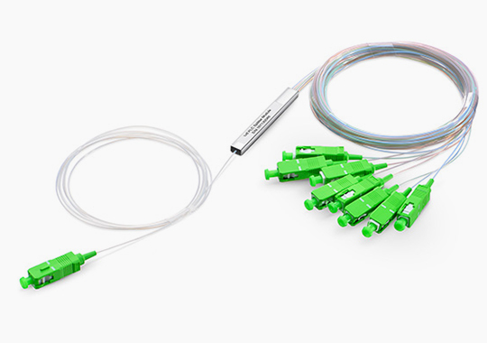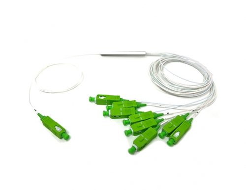 This 1 X 8 SC APC Singlemode Mini 0.09mm Fiber Optic PLC Splitter allows you to take 1 single strand of singlemode fiber and split it into 8 strands. This allows you to get an extra connections depending on whether you are using 2 fiber or 1 fiber bi-directional SFP transceivers or switches. This PLC fiber optic splitter utilizes planar lightwave circuit technology which works by diving one lightwave into two lightwaves. PLC technology provides a stable and reliable solution for your fiber optic network. Fiber optic splitters work great for PONs (Passive Optical Networks such as EPON, GPON, FTTX, and more. Simply connect this splitter to the MDF to create the 8 separate fiber runs.