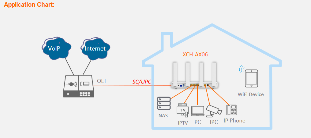 XCH-AX06 (WiFi6 XPON HGU ONU) is a broadband access device specially designed to meet the needs of fixed network operators for FTTH and triple play services.